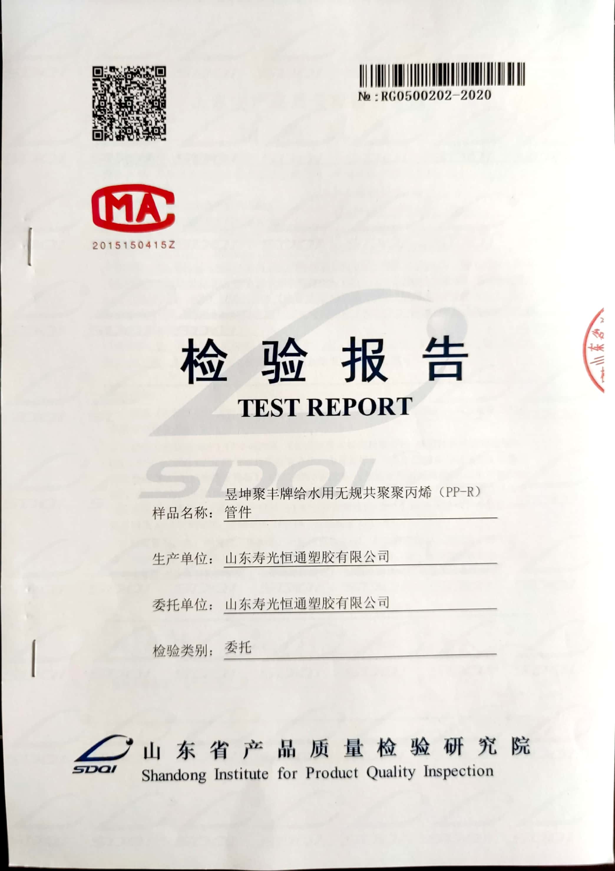山東恒通塑膠 PPR管件 衛(wèi)生檢測報告PVC排水管、PVC供水管、PPR管、PE管、地暖管、灌溉管