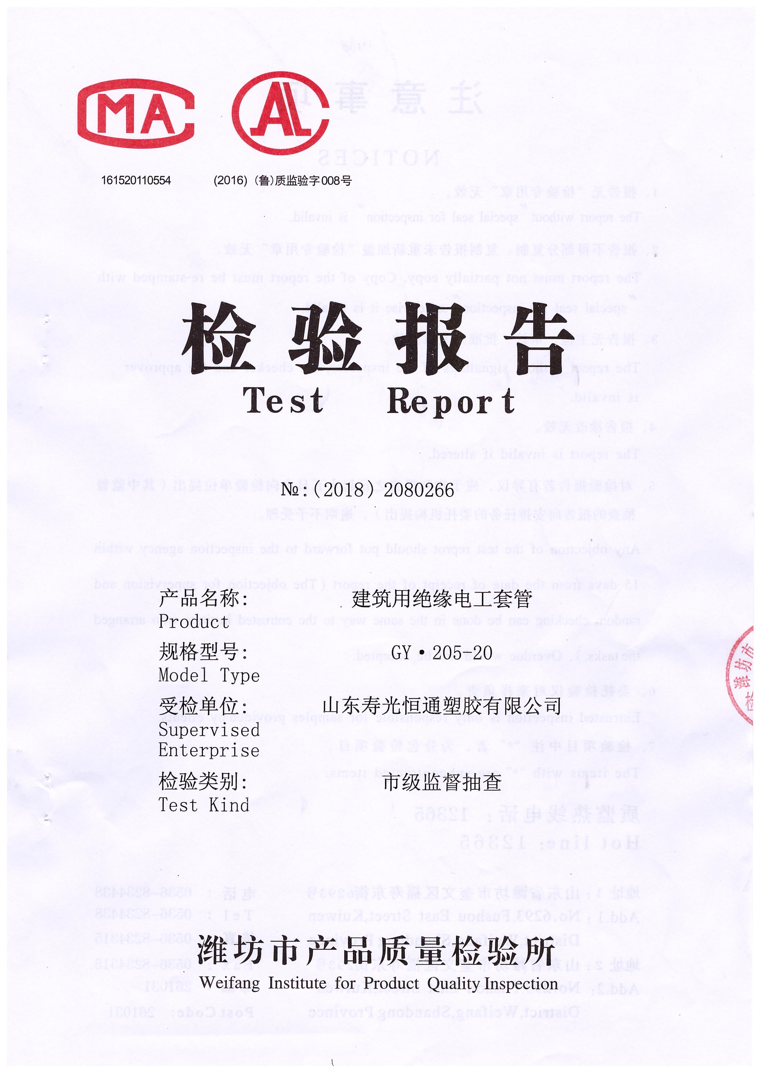 建筑用絕緣電工套管檢測報告山東壽光恒通塑膠主要生產(chǎn):PVC排水管材、管件;HDPE管材、管件、地源熱泵管;PP-R冷熱水管材、管件;PR-RT地暖管材;PVC-U給水管材、管件;農(nóng)田灌溉管;絕緣電工套管、電力通訊管;大口徑…